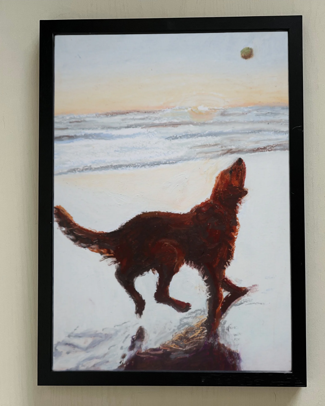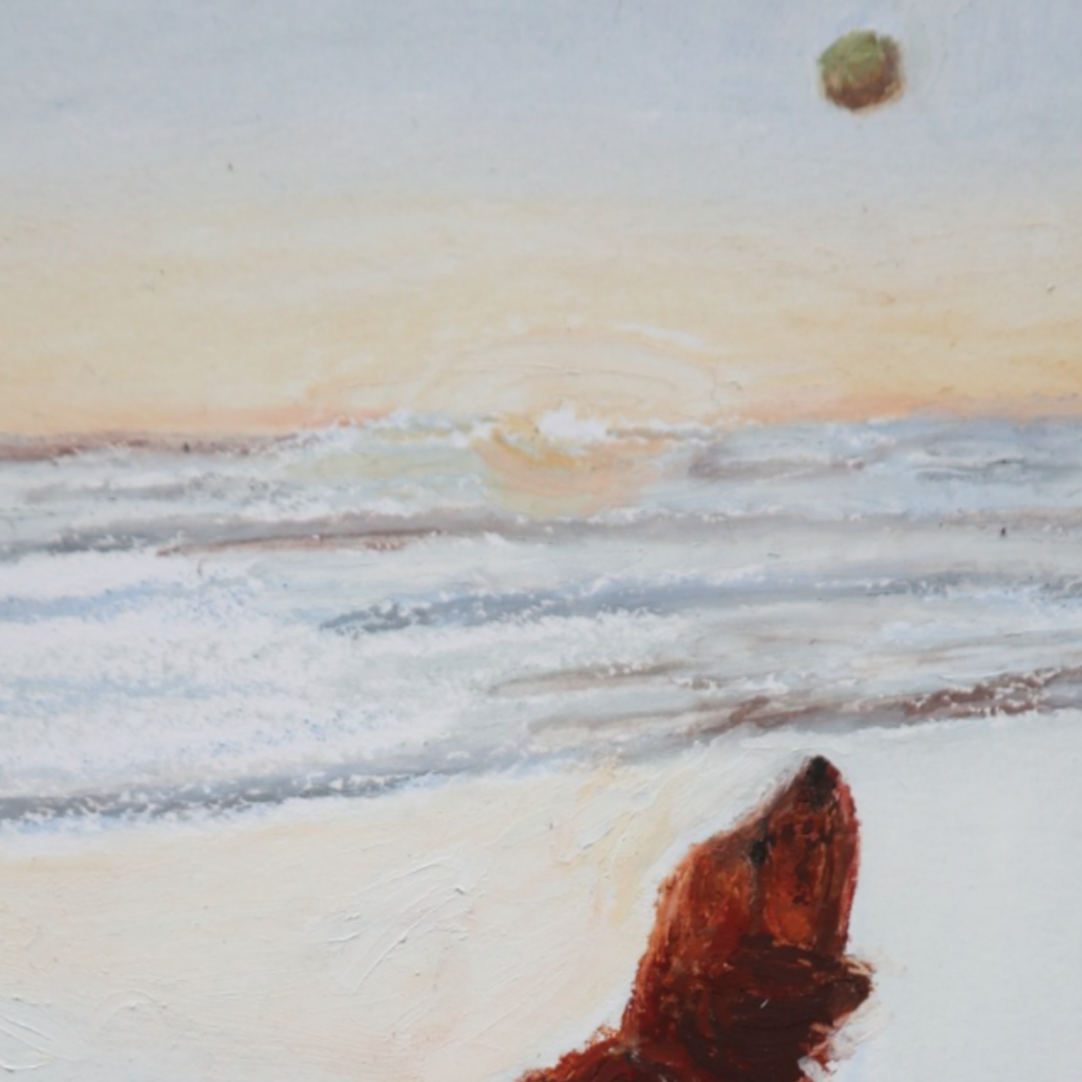 A piece inspired by those endless games of fetch that stay with us long after the sand has settled. Perfect for dog lovers, golden retriever owners, or anyone who loves to make the most of each moment.